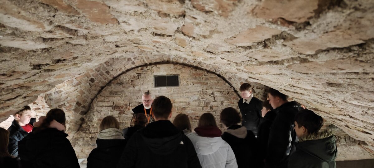 Gruodžio 4-ąją aštuntokai dalyvavo išvykoje į Kultūros paso finansuojamą edukaciją „Nuo Vilniaus katedros požemių iki jos lobyno“, kurios metu turėjo unikalią galimybę gilintis į Vilniaus katedros istoriją ir jos paslaptis. Vilniaus katedros požemiai yra didžiulė, paslaptinga ir intriguojanti istorinė erdvė. Edukacijos metu mokiniai sužinojo apie čia rastus archeologinius radinius ir istorines paslaptis. Vėliau jie aplankė renesansinę Šv. Arkangelo Mykolo bažnyčią, kurioje saugomas katedros lobynas. Ten vaikams buvo pristatyti vertingi meno kūriniai, relikvijos ir kiti istoriniai artefaktai. Unikalūs katedros lobyno eksponatai pratęsia ir papildo požemiuose girdėtus pasakojimus, iliustruoja amatininkų meistrystę ir didikų dosnumą.